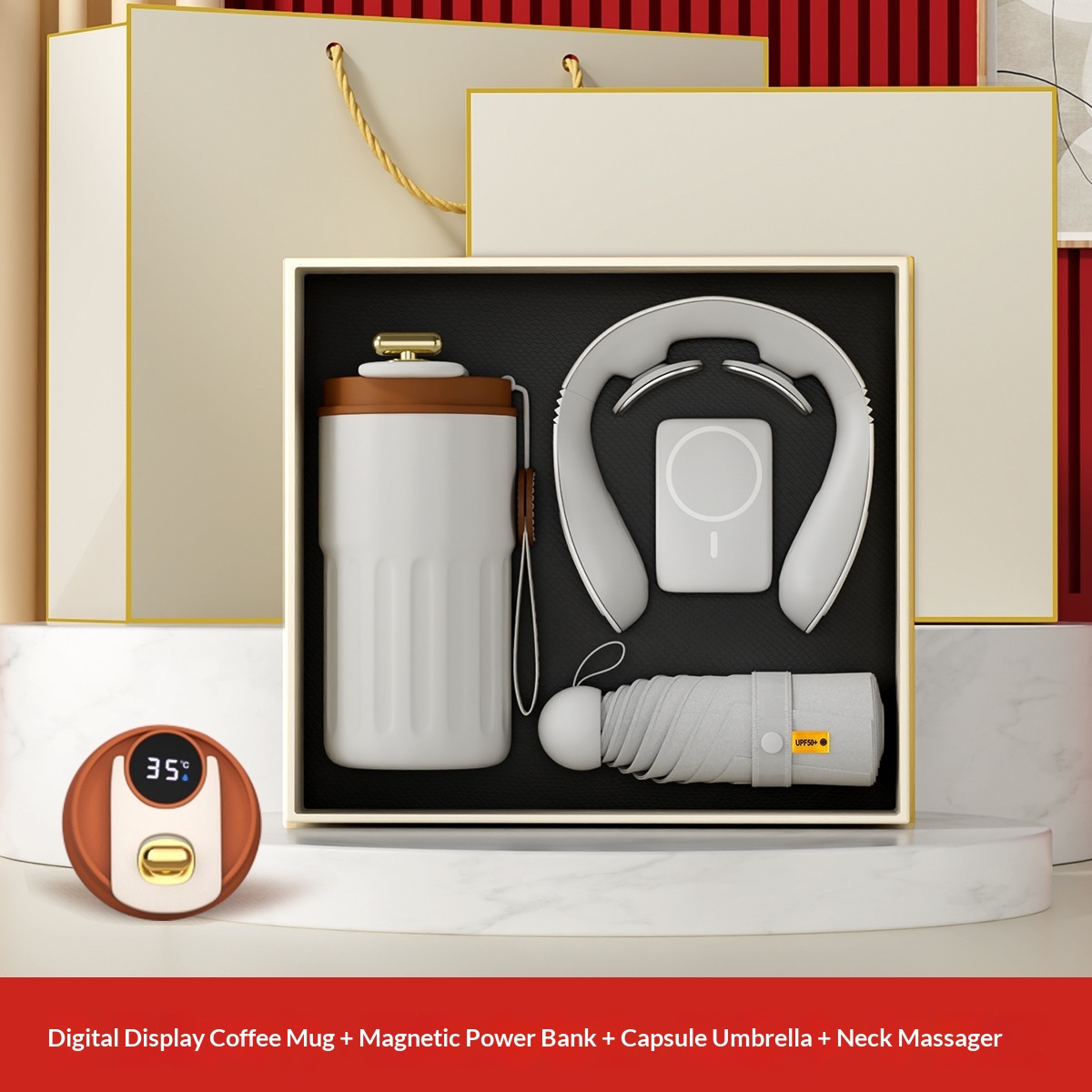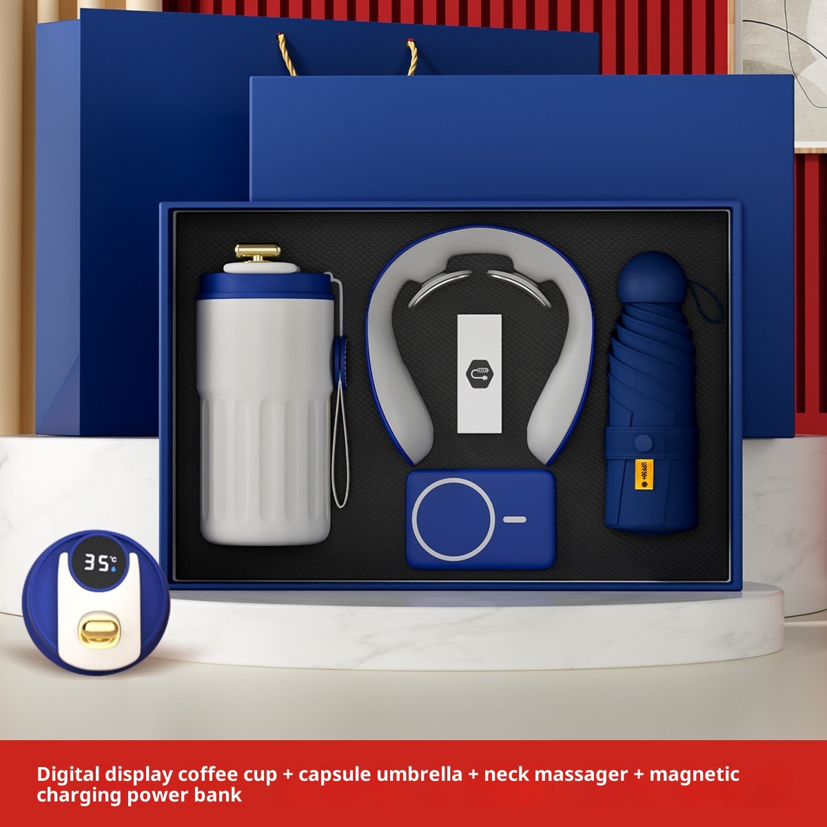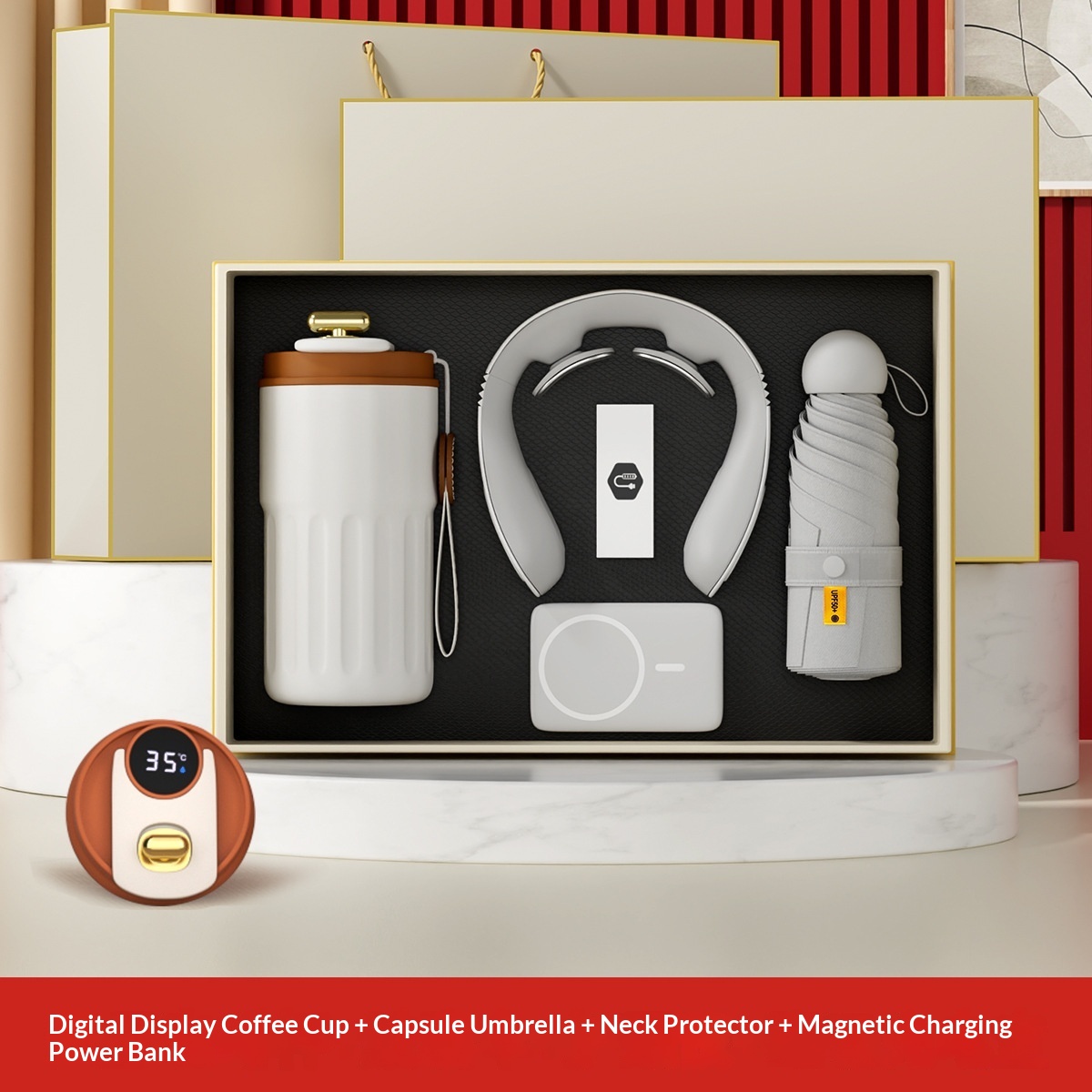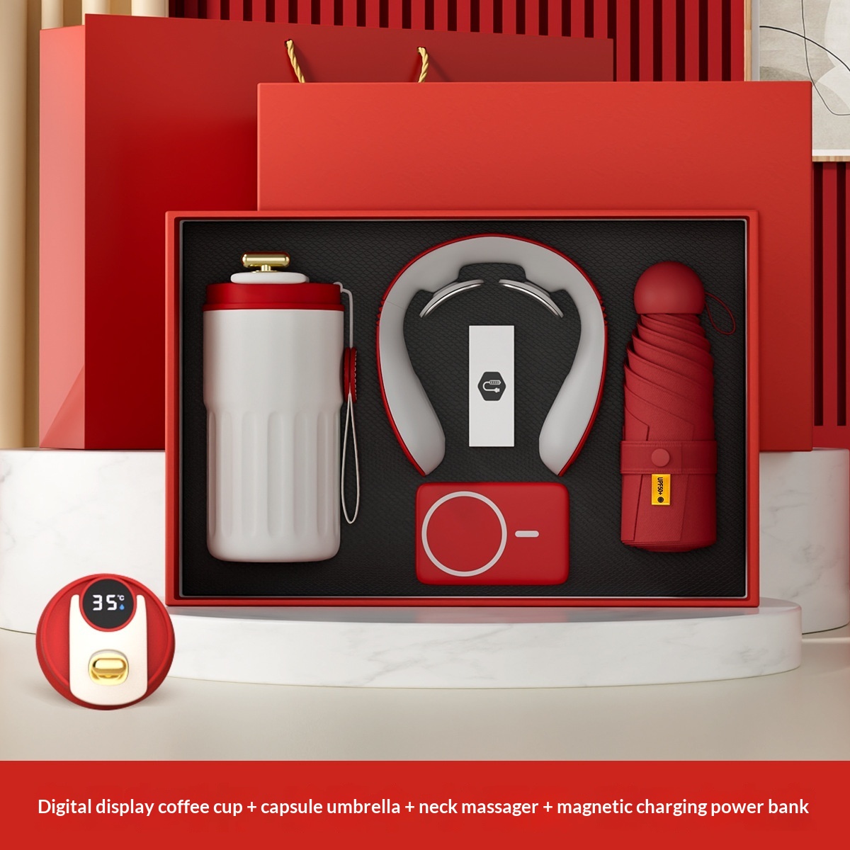 Tazza da caffè + protezione per il collo + ombrello a capsula + power bank magnetico