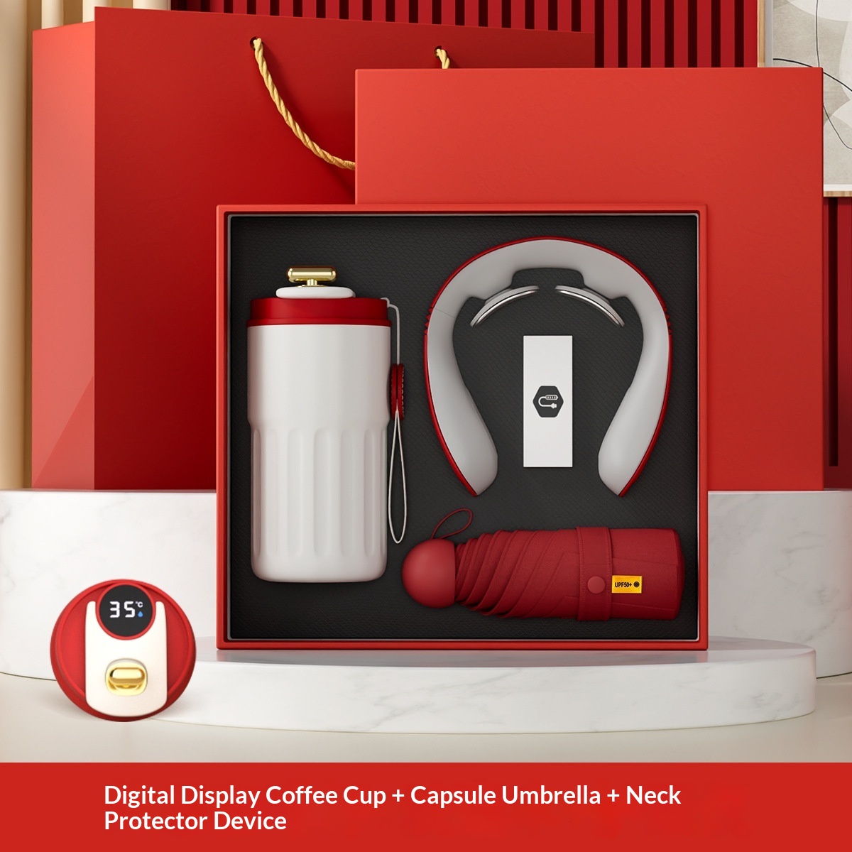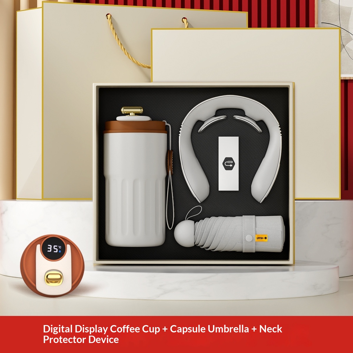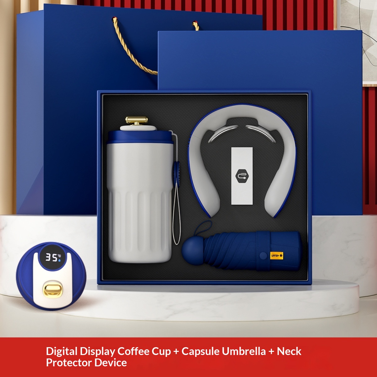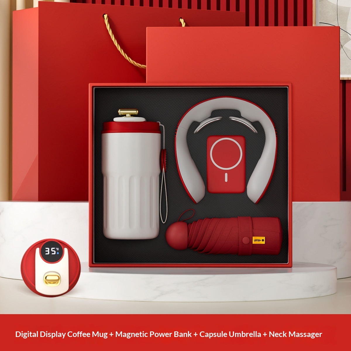 Tazza da caffè + protezione per il collo + ombrello a capsula + power bank magnetico